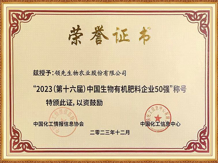 2023中國生物有機(jī)肥l料企業(yè)50強(qiáng)
