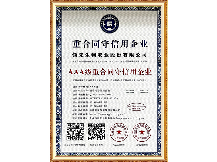 AAA級(jí)重合同守信用企業(yè)